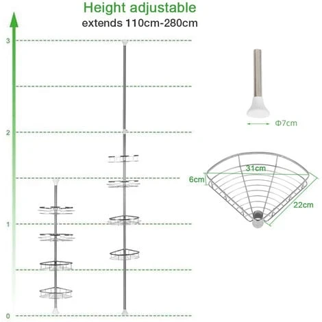 – La tige télescopique peut s’étendre d’environ 110 à 280 cm sans avoir à percer.