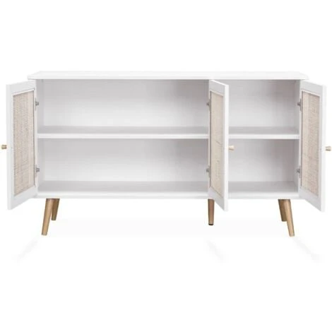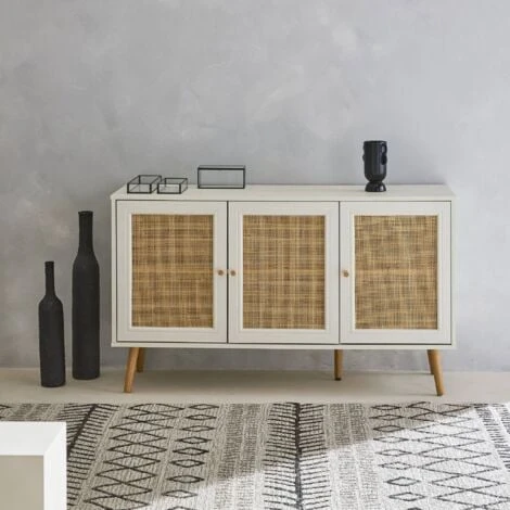 Apportez une note de nature chez vous avec ce buffet de rangement bohème. Mêlant le charme du cannage et celui du décor bois, il est élégant et authentique. Ses pieds compas scandinave donne une petite touche vintage à l’ensemble.