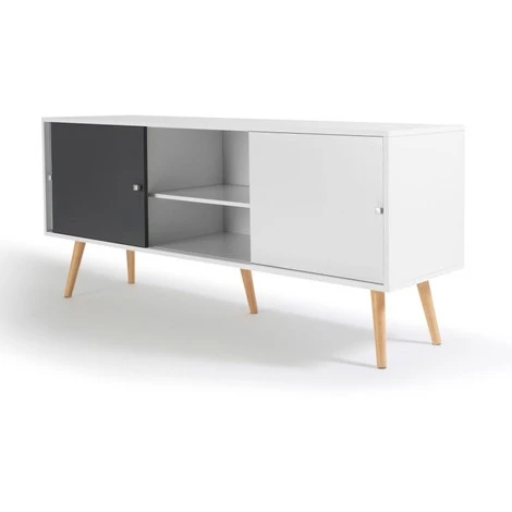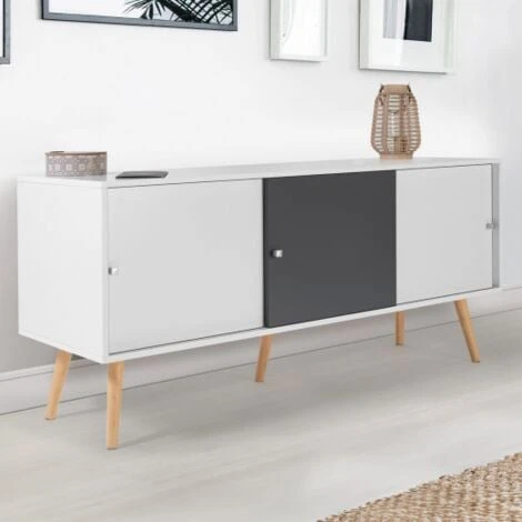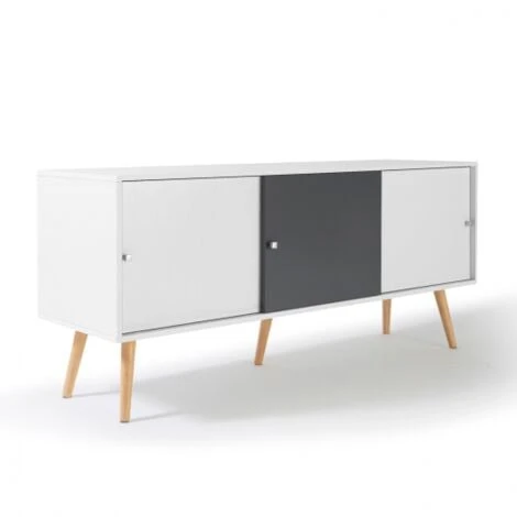 Buffet EFFIE Scandinave 3 Portes Bois Blanc Et Gris