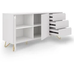 ELOISE – Buffet Enfilade Blanc équipé De 3 Tiroirs Et 2 Portes