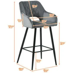 Kosmi – Lot De 2 Tabourets Style Scandinave Assise Noire, Pieds En Métal – Hauteur D’assise 76cm