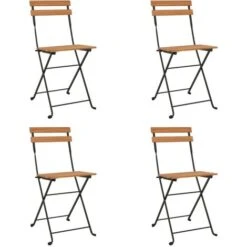 Lot De 4 Chaises De Jardin Pliantes Chaises De Bistrot Bois De Teck Solide Et Acier 58038