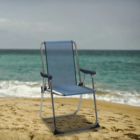 Cette chaise Marinera est fabriquée avec un mécanisme de pliage de sécurité. Elle est fabriquée en tubes d’aluminium ronds et légers qui évitent la corrosion, vous permettant ainsi de l’emporter facilement à la plage ou à la piscine. Le tissu textilène est un tissu confortable et flexible, qui laisse transpirer et sèche rapidement ; on peut le laisser à l’extérieur. Elle est pliable pour que vous puissiez l’emmener partout où vous en avez besoin, à la plage, à la piscine ou au camping, sans prendre beaucoup de place. Elle est équipée de pieds stabilisateurs pour plus de sécurité.nnCaractéristiques :n- Pour 1 personne.n- Utilisation en extérieur.n- Tubes d’aluminium.n- Dimensions: 55x53x89 cm.n- Matériel: Tissu textilène. Lavable à l’eau.n- Couleur : Bleu.n- Poids maximum supporté: 100 kg.n- Poids: 1,9 kg.