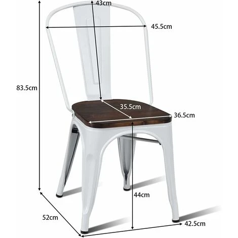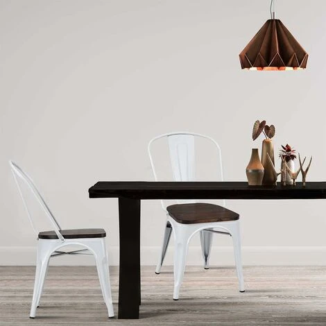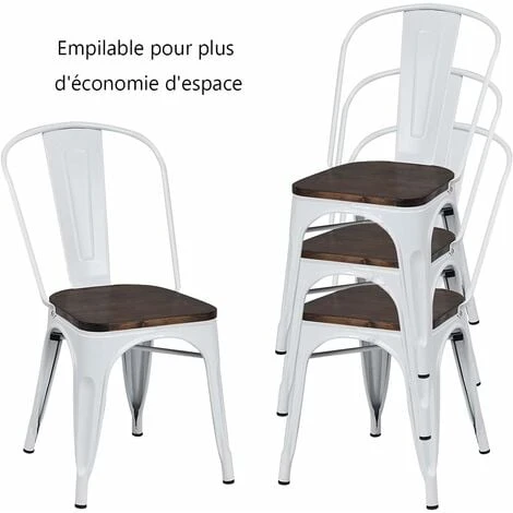 - Ces chaises de style vintage en métal font un mobilier confortable et élégant. Dotées d’une structure métallique supérieure et d’une assise en bois épais, elles sont suffisamment solides pour supporter jusqu’à 125 kg. Chaque chaise est dotée d’un renfort en croix sous l’assise pour davantage de stabilité. Elle comprend des patins en plastique pour protéger votre sol et éviter qu’elle ne glisse. Vous saurez l’apprécier dans votre cuisine, sur votre terrasse ou dans un bistrot.