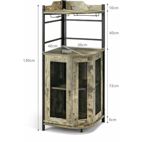- COSTWAY Buffet de Cuisine désencombrera l’espace et transformera un coin inaperçu en un beau bar à domicile. L’étagère supérieure est équipée de 2 porte-verres pour ranger les verres à pied fragiles, ce qui la rend pratique pour prendre un verre à tout moment. Et l’armoire inférieure avec des portes ventilées en treillis métallique offre beaucoup d’espace de rangement. L’étagère à l’intérieur peut être ajustée ou retirée.