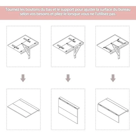 - 【Design spécial à double pliage :】par rapport à d’autres bureaux pliants avec seulement 1 point de pliage, cette table à rabat avec 2 modes de pliage facile vous apportera beaucoup plus de commodité. Le bureau flottant peut être complètement plié sur le mur lorsqu’il n’est pas utilisé et vous pouvez également plier la moitié du comptoir lorsque vous n’avez pas beaucoup d’objets à y mettre.