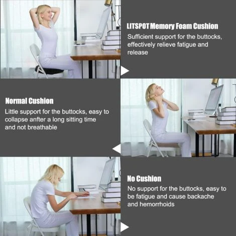 CONTOURS ERGONOMIQUES DESIGN INNOVANT: à la recherche de l’expérience d’assise à long terme la plus confortable possible, le coussin d’assise annulaire est conçu avec 3 contours. Un à l’arrière de l’oreiller pour le confort du coccyx et 2 contours des jambes pour assurer une bonne circulation sanguine et pas de crampes. L’angle du bas de la jambe limite la pression sur le bas de vos jambes.