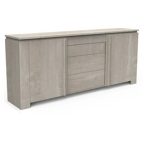 Superbe enfilade coloris chene champagne s’accordera parfaitement à votre salle à manger ! Meuble en panneaux de particules de 15 et 22 mm décor imitation CHENE CLAIR-2 portes ouvrantes avec deux plateaux réglables-3 tiroirs–Dimensions de l’enfilade : -Largeur : 2.05 m env-Profondeur : 50 cm env-Hauteur : 83 cm env-