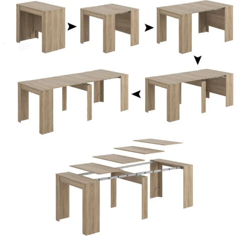 STRUCTURE ET UTILISATION – Console polyvalente avec support d’extension, meuble parfait à placer dans la cuisine, le salon, la salle à manger ou le couloir, idéal pour les pièces nécessitant de l’espace et utile pour accueillir vos invités, amis et parents – Meuble moderne , pratique, fonctionnel et peu encombrant, c’est la solution idéale pour meubler les petits espaces – Grâce à sa structure extensible particulière, ce bureau multi-positions peut être utilisé dans différentes compositions en fonction du nombre d’extensions ajoutées à la structure.