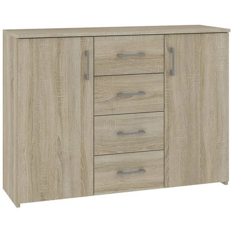 Pratique et plein d’élégance le buffet ELTON offre un grand volume de rangement en enfilade et une finition soignée et détaillée. Cette enfilade saura s’intégrer parfaitement dans chaque intérieur. Sa structure est fabriquée en panneaux de particules mélaminés de première qualité.