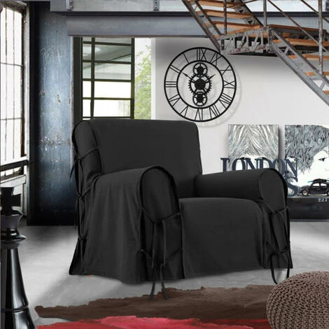 Couleur : anthracite. 80 cm (Largeur haut) x 90 cm (Largeur bas) x 90 cm (Hauteur) x 60 cm (Profondeur) x 25 cm (Largeur accoudoir). Matière : 100 % coton supérieur, 200 gr/m2. Finition: dos couvert , finition nouettes , cette housse offre une tenue impeccable aux canapés ou fauteuil avec accoudoirs.
