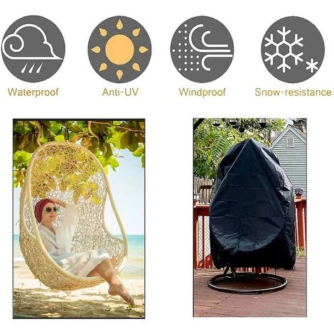 Housse de chaise suspendue durable Cette housse de chaise d’œuf de patio est fabriquée en polyester tissé 420D avec revêtement en PVC, qui est résistant à l’eau, à la protection contre les UV et à la poussière. Taille universelle pour la plupart des balançoires en forme d’œuf 75″ x 45″. Cette housse de chaise suspendue s’adapte à la plupart des types de chaise à œuf pivotante simple/chaise Pod/Swingasan, adaptée à la plupart des chaises suspendues. Housse extérieure coupe-vent pour chaise pivotante en osier. la boucle peut être ajustée pour resserrer le cache-poussière, ce qui n’est pas facile à souffler et à endommager.Housse de chaise suspendue multifonctionnelle La housse de chaise en forme d’œuf protège vos meubles de la poussière et de la lumière du soleil, gardant les meubles propres et neufs. Un matériau résistant à la guerre protège vos meubles de la pluie et du gel. Garantie fiable Pour une raison quelconque, vous n’êtes pas satisfait de la housse TinorOutdoor Swing Egg Chair, veuillez nous contacter.