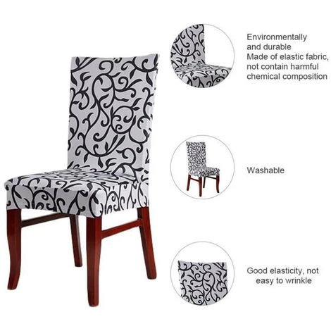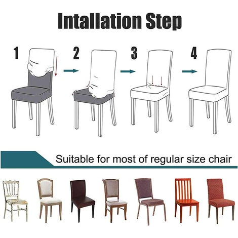 - 1. La housse de chaise est très extensible, elle s’adapte donc à une grande variété de chaises.