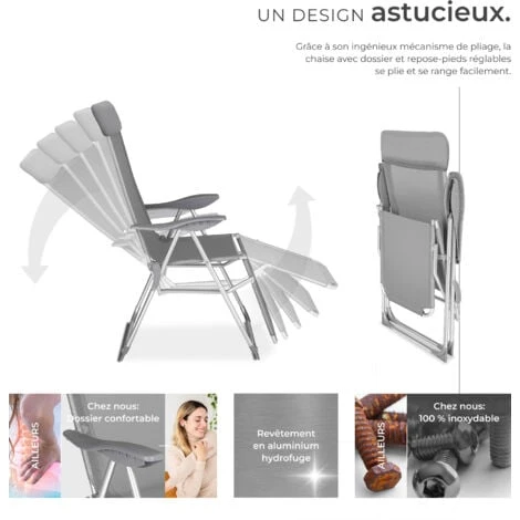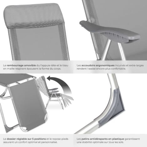 - Matériaux : Aluminium / Textilène / Polyuréthane.