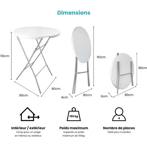 Pour un usage intérieur et extérieur, ces table haute mange debout sont l’équipement indispensable pour vos repas entre amis ou en famille. Que ce soit à la maison, au camping, en balade, pour un pique-nique ou un mariage, le mange debout exterieur deviendra vite votre indispensable à chaque sortie !