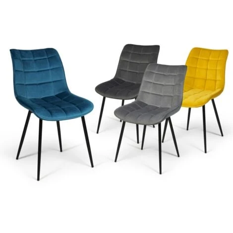 Lot De 4 Chaises MADY En Velours Mix Color Bleu, Gris Clair, Gris Foncé, Jaune
