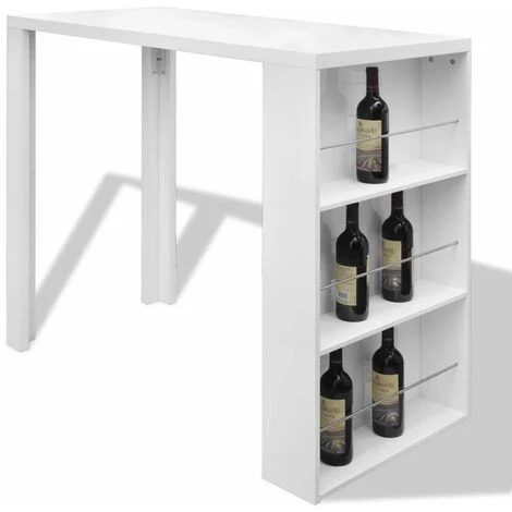 Cette table de bar à haute brillance est l’alternative parfaite pour les petits appartements ou lorsque l’espace est un peu limité. Son design contemporain fait de cette table un ajout chic à votre cuisine ou salle à manger. La construction de l’étagère de stockage à 3 couches vous permettra d’économiser beaucoup d’espace pour que vous puissiez mettre des bouteilles de vin ou d’autres articles.Grâce à la surface robuste de la table en MDF, elle est facile à nettoyer. Avec peinture spéculaire, elle a un brillant élevé. Les 2 pieds en acier et le support latéral en MDF confèrent à la table une stabilité optimale. Vous vous sentirez sûrement plus à l’aise et agréable de vous asseoir à côté de cette table de bar en buvant du vin ou du café.De plus, la table basse blanche est d’une hauteur idéale et d’un design spécial, qui complétera certainement le décor de votre maison.