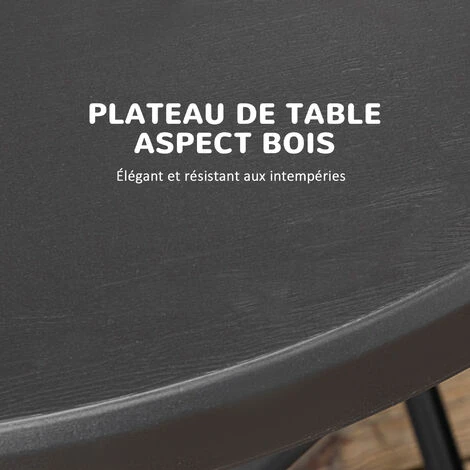 – Table pliante de jardin 4 personnes mélant acier époxy et HDPE aspect bois coloris gris très élégant