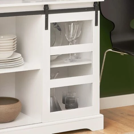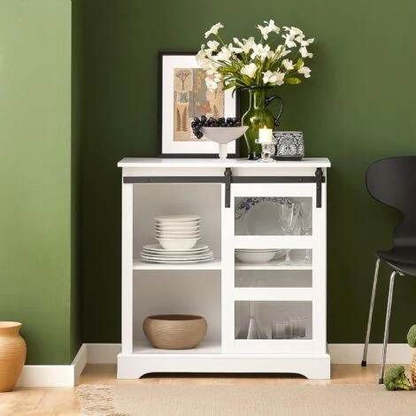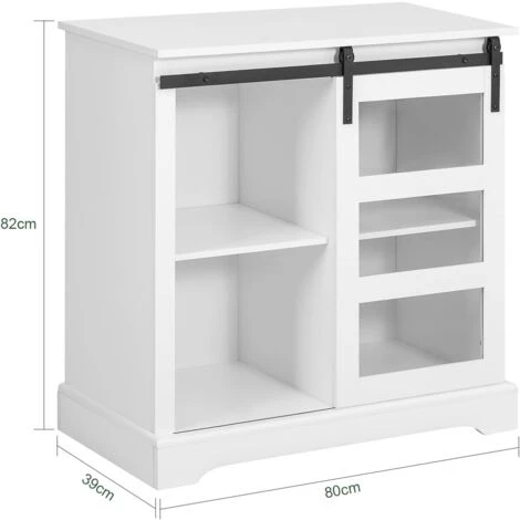 SoBuy FSB46-W Buffet Commode Armoire De Rangement Meuble De Rangement Avec Porte De Grange Coulissante à 2 Niveaux, 80x39x82cm, Blanc