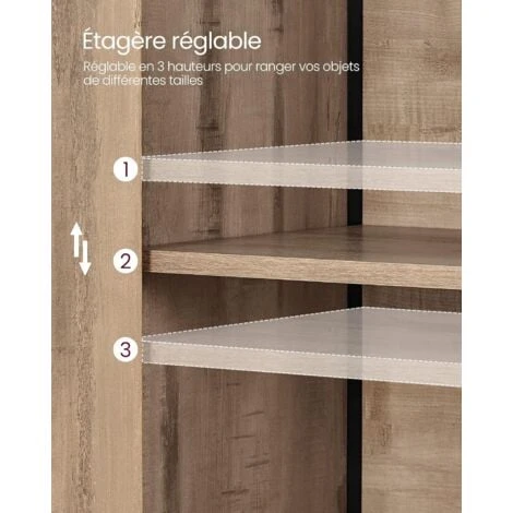 Structure stableFait en panneaux d’aggloméré et en acier, ce meuble est stable | Poignées en métalLes poignées métalliques de qualité sont pratiques pour ouvrir et fermer les portes | Pieds réglablesLes pieds réglables assurent une bonne stabilité même sur un sol légèrement irrégulier |