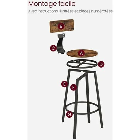 - [Style rustique] Avec une surface boisée marron rustique, un cadre en métal noir et des clous emblématiques, ces tabourets hauts de style industriel sont parfaits pour votre coin bar, cuisine, salle à manger et plus encore