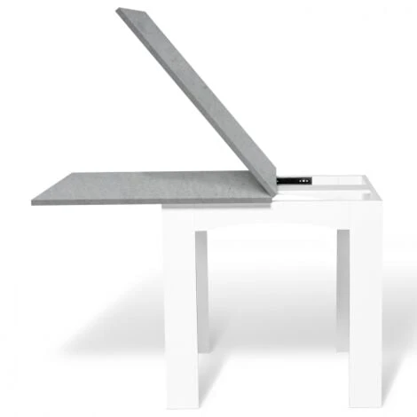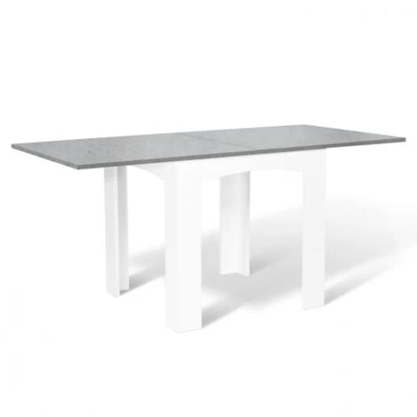 Descriptif de la table à manger DONA pliante/extensible :Subjuguez votre entourage avec la table pliante/extensible DONA !Compacte et carrée une fois pliée et les rallonges rangées, elle s’adaptera parfaitement à un petit espace. Adoptez sa taille minimum pour gagner de la place et donner du volume à votre pièce ! Idéal pour une cuisine ou un salon-salle à manger 2-en-1 ! Un véritable confort au quotidien ! Vous avez vu grand, recevez du monde de façon impromptue ou organisez un repas de famille ? Pas besoin de deuxième table.Grâce à son système ingénieux de rallonges pliables à la façon d’un portefeuille, transformez-là en un instant !Avec ses dimensions généreuses une fois dépliées 160 x 78 cm et son format rectangulaire, installez jusqu’à 6-8 couverts selon vos assises pour des repas mémorables !Son design contemporain et épuré, mélange de lignes droites et arrondies, ainsi que plateau façon béton chic et moderne, apporteront design et élégance à votre intérieur.En plus d’être fonctionnelles, les courbes arrondies du piétement assurent d’être confortablement installé.Stable et robuste, en panneaux de particules, dotée de pieds d’une largeur de 11 cm, ne craignez pas d’y poser votre vaisselle, vos vases et plats …Grâce à ses dimensions pratiques même un fois repliée, Longueur 80 cm x largeur 78 cm, en véritable caméléon, servez-vous en comme bureau d’appoint selon vos besoins du moment. Largement suffisant pour y disposer livres, papiers, ordinateur !Un table multi fonctions design parfaite pour tous les jours et les grandes occasions !Dimensions de la table à manger DONA pliable/extensible :Dimensions totales pliée : Longueur 80 x largeur 78 x Hauteur 76 cmDimensions totales dépliée : L.160 x l. 78 x H. 74 cmDimensions des pieds : L. 11 x l. 11 cmEspace entre les pieds : 52 cmSolide, elle est surélevée de 4 pieds en boisPlateau épaisseur : 2 cmÀ monter soi-mêmeRetrouvez tous nos coloris et modèles contemporains sur notre boutique en ligne :- Table à manger extensible DONA 6-8 personnes hêtre 80-160 cm- Table à manger extensible DONA 6-8 personnes blanche 80-160 cm- Table à manger extensible DONA 6-8 personnes noire plateau façon hêtre 80-160 cmA associer par exemple avec le lot de 6 chaises ROMANE grises.