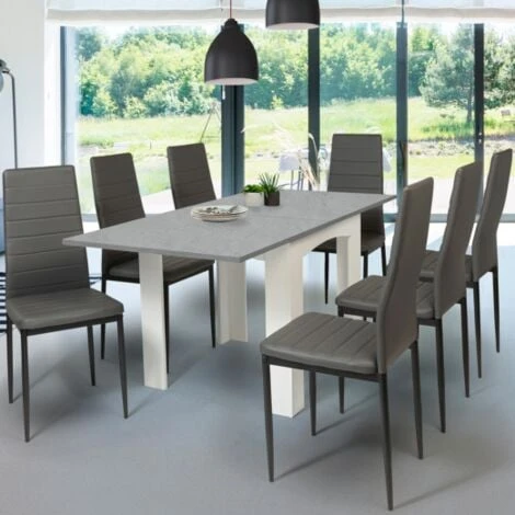 Table à Manger Extensible DONA 6-8 Personnes Plateau Effet Béton Ciré 80-160cm