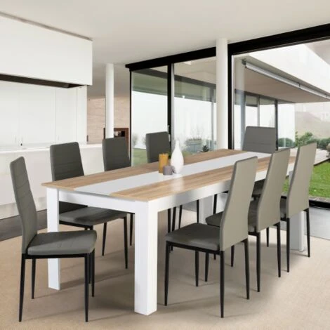 Table à Manger GEORGIA 8 Personnes Blanche Et Imitation Hêtre 160 X 90 Cm