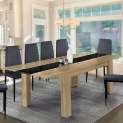 Table à Manger Extensible GEORGIA 6-10 Personnes Imitation Hêtre Et Noire 140-220 X 90 Cm