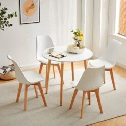 Table A Manger Ronde En Bois Salle A Manger Scandinave Table En Bois A Quatre Pieds 808073cm -Blanc