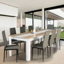 Table à Manger 180×90 En Bois De Manguier Laqué Beige Pieds En X Anthracite Mat FREEFORM 5