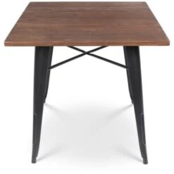 KOSMI – Table Noire Carrée Style Industriel En Métal Et Bois Foncé Modèle Factory Loft