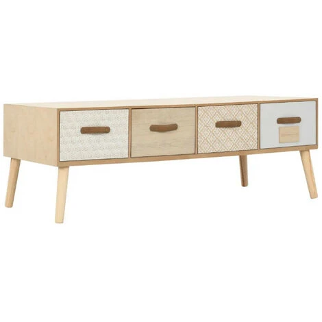 Table Basse 4 Tiroirs Bois Et Pin Massif Clair Jordy