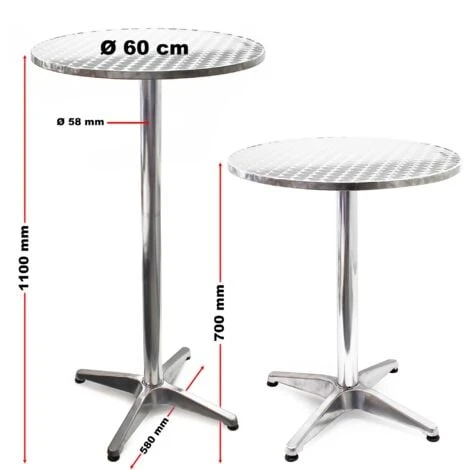 Table de bistro en aluminium réglable en hauteur 70/110 cm Ø 60 cm