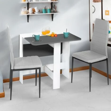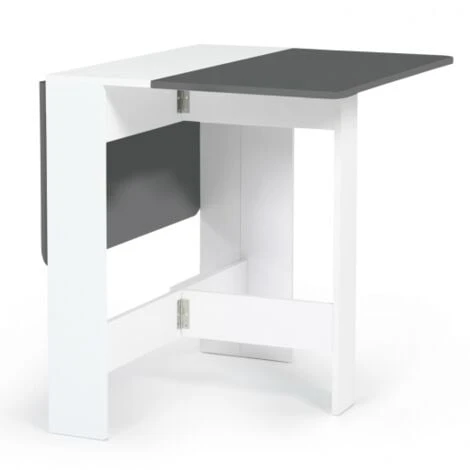 Table Console Pliable EDI 2-4 Personnes Bois Blanc Plateau Gris