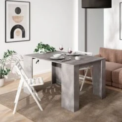 Skraut Home – Table Console Extensible Jusqu’à 140 Cm -78 X 90 X 50 Cm – Finition Ciment