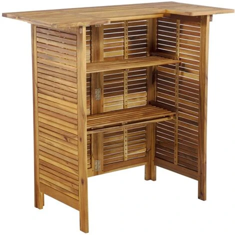La table haute de bar est en acacia massif, un bois dur tropical, stable, durable et résistant aux intempéries. La finition à l’huile donne à la table une couleur chaude et la rend facile à entretenir. La table haute dispose de 2 étagères pour garder les aliments et les boissons à portée de main.
