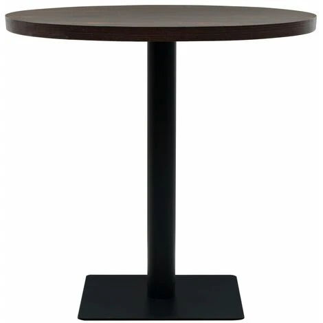 Le dessus de table est en MDF avec une finition de grain et est supporté par un pied et une base en acier.