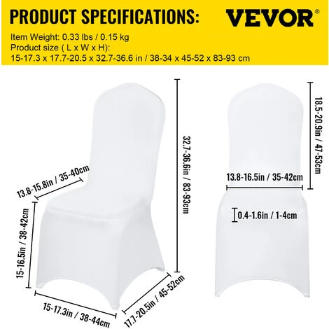 Couverture de 50 PCS de Taille Parfaite : Quantité : 50 pièces. Dossier de chaise : 47-53 cm x 35-42 cm (H x Largeur). Siège de chaise : 38-42 cm x 35-40 cm (H x Largeur). Distance entre les jambes : 38-44 cm (longueur). Veuillez vous référer au guide de l’image pour plus de détails. De plus, la housse de chaise à manger extensible peut s’adapter à la plupart des chaises (sans accoudoir), y compris les chaises de salle à manger, les chaises empilables et les chaises de banquet.
