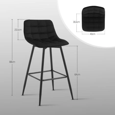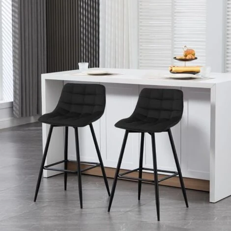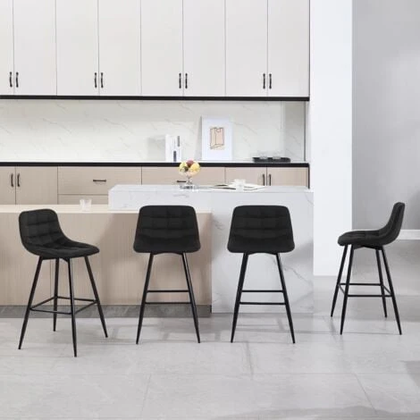 WOLTU 4X Tabouret De Bar. Chaise De Bar. Assise Rembourrée En Velours Avec Pieds Et Repose-Pieds En Métal.Noir